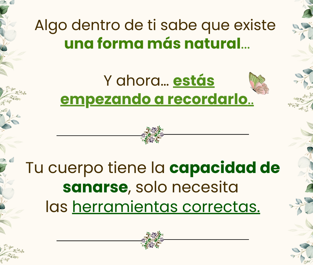 "Chicos es increíble la cantidad de info. Es literalmente una biblia de la salud natural. Ya hice mi primera tintura madre y salió perfecta!"